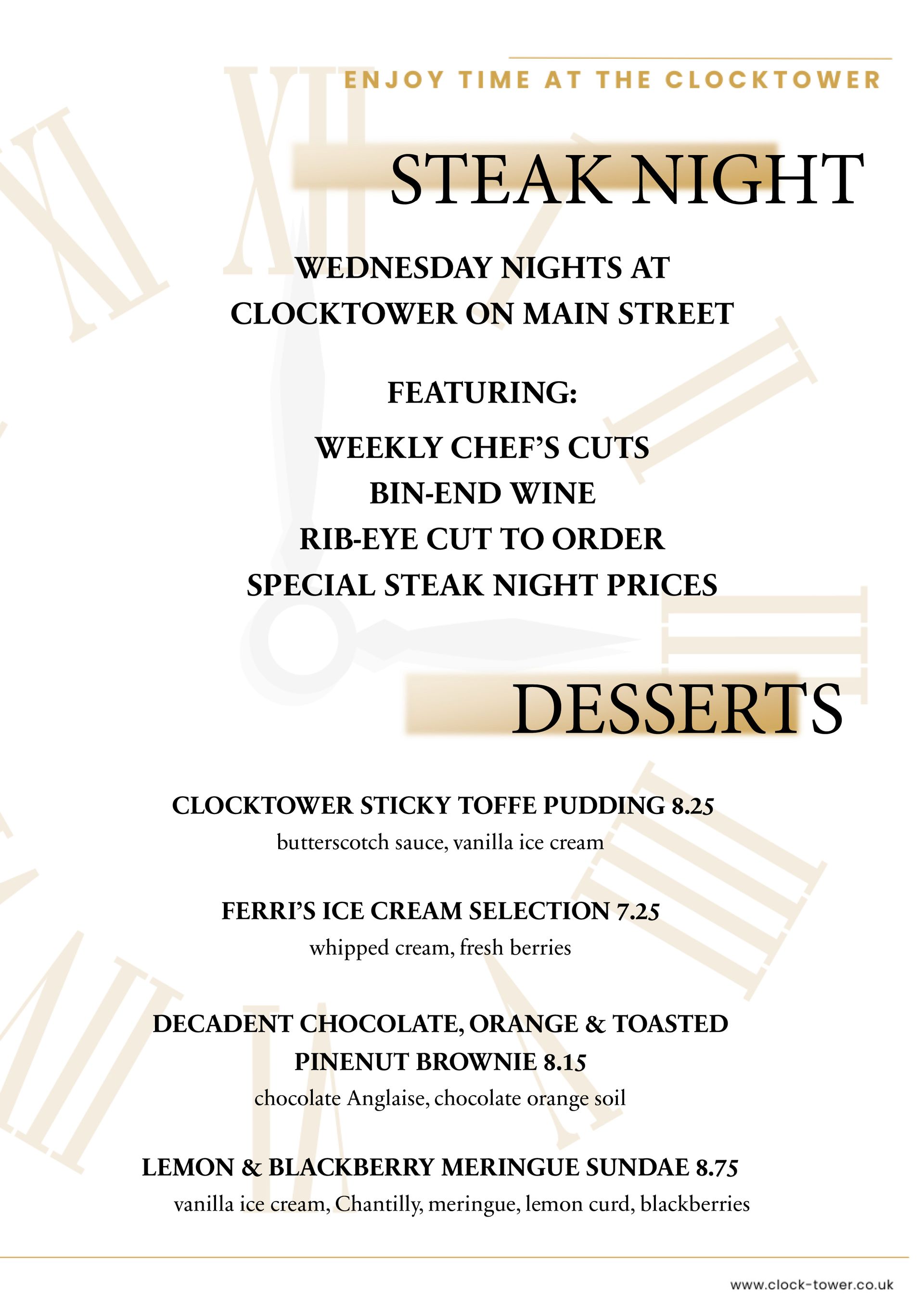 MAIN STREET STEAK NIGHT & DESSERTS MENU