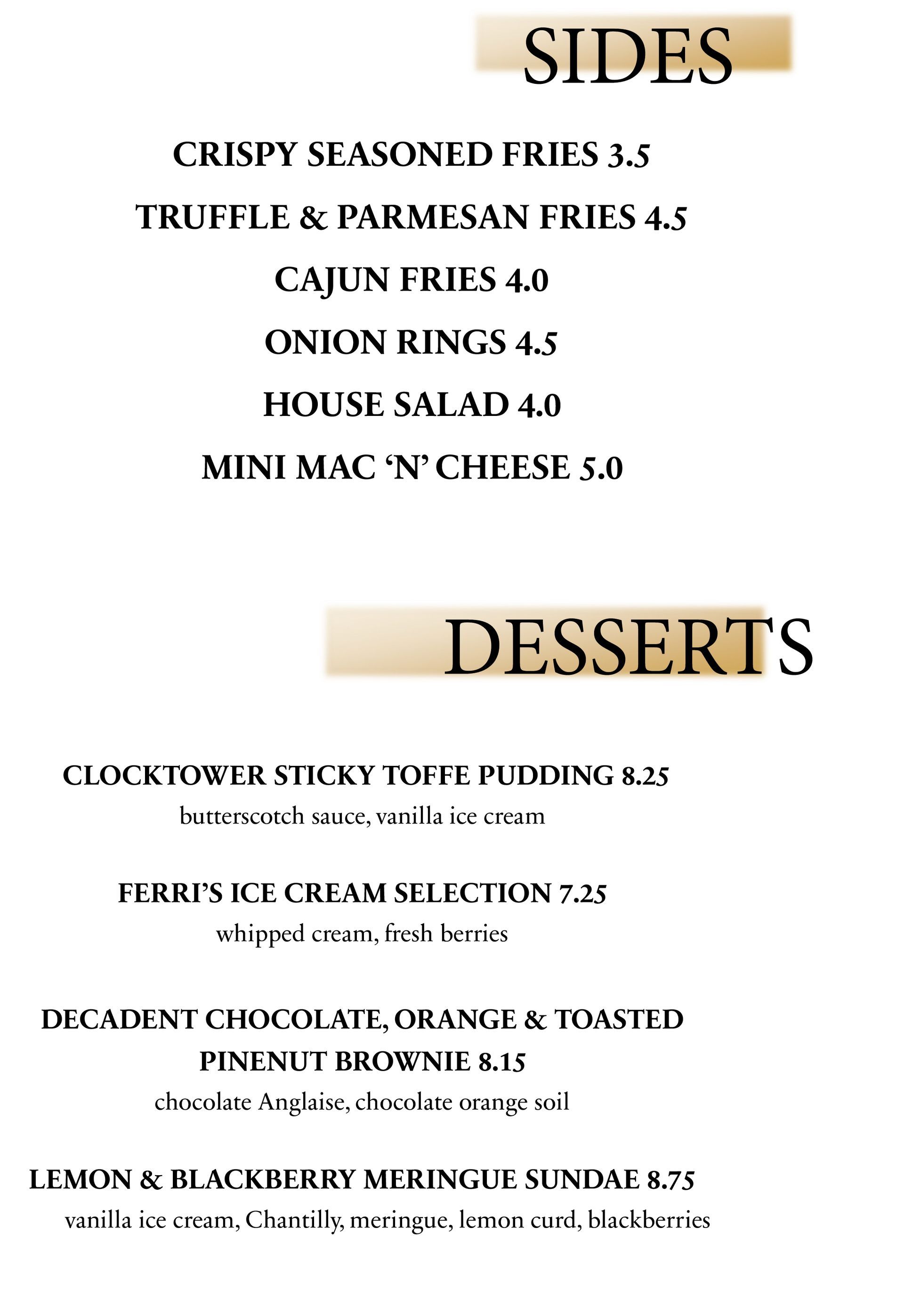 MAIN STREET SIDES & DESSERTS MENU
